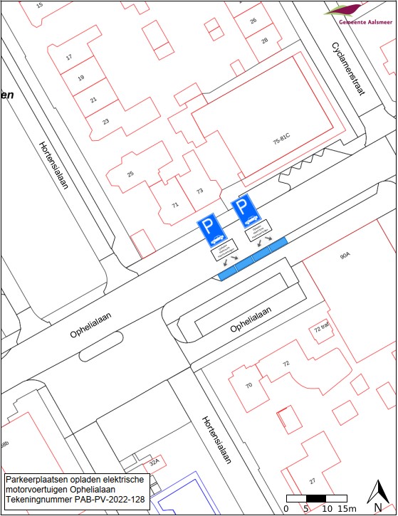Burgemeester en wethouders van Aalsmeer besluiten om hun besluit van 19 september 2022 (zaaknummer Z22-073272), waarbij vier parkeerplaatsen in de Ophelialaan zijn aangewezen als parkeerplaatsen voor het opladen van elektrische motorvoertuigen, in te trekken. De openbare laadpalen zijn nog niet geplaatst op deze locatie, waardoor in de praktijk niets veranderd. De geplande parkeerplaatsen voor het opladen van elektrische motorvoertuigen zijn weergegeven op de in dit besluit opgenomen tekening PAB-PV-2022-128
