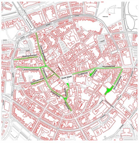Ook de toegangsstraten naar de vrijmarkt en blusvoorzieningen op de vrijmarkt moeten volledig vrij blijven.