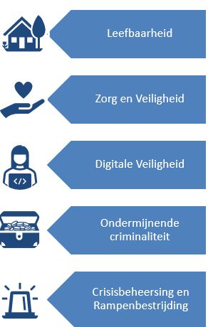 In dit Veiligheidsplan staat beschreven wat onze ambities en prioriteiten zijn voor de aankomende jaren. Dit hebben we samengevat in vijf veiligheidsthema’s.