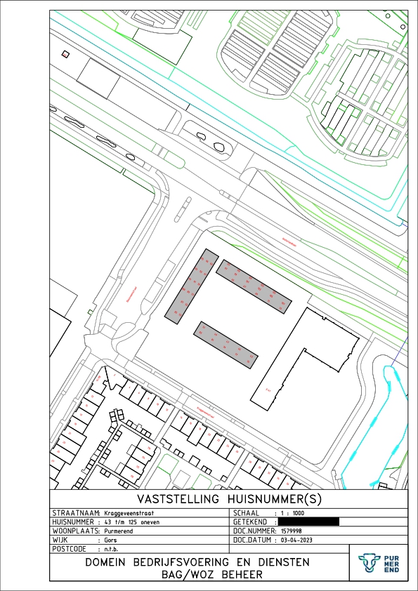 Kennisgeving huisnummerbesluit Kraggeveenstraat 43 t/m 125 Purmerend