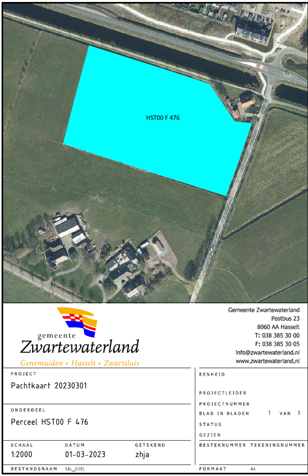 De gemeente Zwartewaterland biedt een perceel gras/maisland aan in geliberaliseerde pacht van 1 mei 2023 – 31 december 2023. Het volgende perceel wordt aangeboden als grasland en/of maisland, voor een vastgestelde prijs van €950,- per hectare: