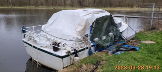 Aan de Verlaatweg te Almere is een witte kajuitboot geplaatst in strijd met het bepaalde in artikel 5:19 van de Algemene Plaatselijke Verordening (APV 2011. In samenhang met de nadere regels ligplaatsen van vaartuigen in de gemeente Almere.