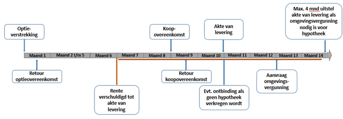 In tijd ziet het proces van optieverstrekking tot het kopen van een regulier bouwkavel er als volgt uit: