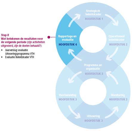 De verschillende stappen staan hieronder toegelicht met een verwijzing naar het hoofdstuk in Deel I. In Deel II staat de uitwerking van de VTH-strategieën en risicomatrix (onderdeel stap 2).