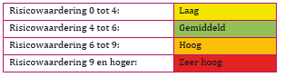 Na het invullen van de risicomatrix wordt aan elke activiteit een risicowaardering toegekend. Hieruit volgt de volgende prioritering: