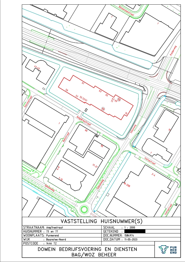 Kennisgeving huisnummerbesluit Ampèrestraat 73 en 77 Purmerend