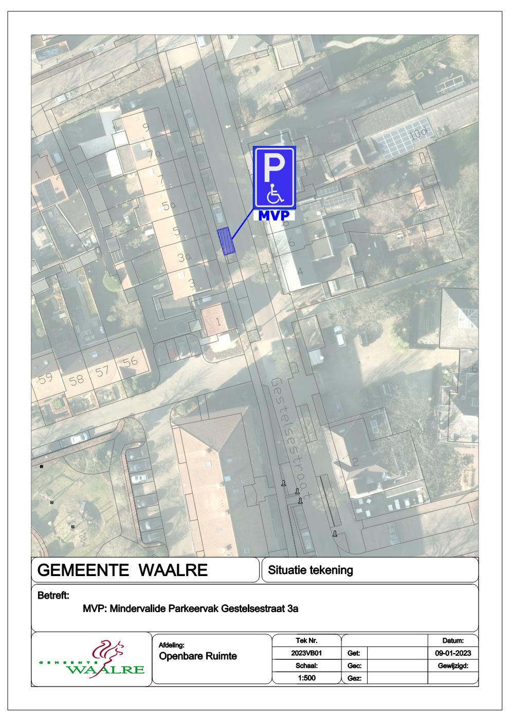 Tot het aanleggen van een individuele gehandicaptenparkeerplaats ter hoogte van de Gestelsestraat 3a te Waalre, middels plaatsing van bord E06 RVV 1990 in combinatie met een kentekenplaat, conform bijbehorende tekening.