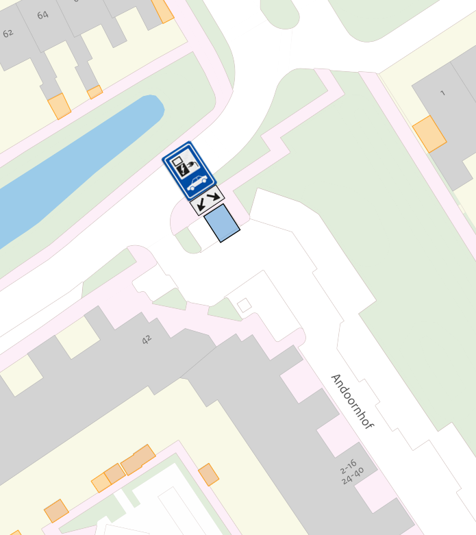 Door middel van het plaatsen van bord E08 – Parkeren uitsluitend voor de aangegeven doelgroep –van het RVV-1990, voorzien van een onderbord met daarop aangegeven de tekst “uitsluitend laden elektrische voertuigen” en het markeren van twee parkeervakken, het betreffende weggedeelte van Andoornhof, ter hoogte van huisnummer 42, bij de laadpaal uitsluitend te bestemmen voor het opladen van elektrische voertuigen;