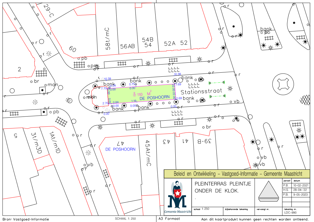 bij besluit van het college van burgemeester en wethouders van 24 april 2023 is bepaald dat de volgende horecalokaliteit in aanmerking komt voor plaatsing op het indelingsplan voor het pleinterras “Pleintje onder de Klok (Stationsstraat) – pleinterras van 110 m2”: