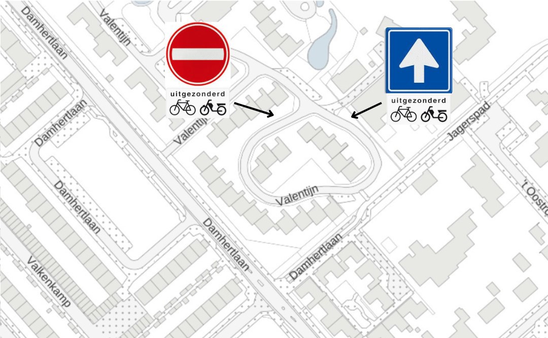 de gemeente dit betreffende stuk van de Valentijn als eenrichtingsverkeer wilt aanduiden;