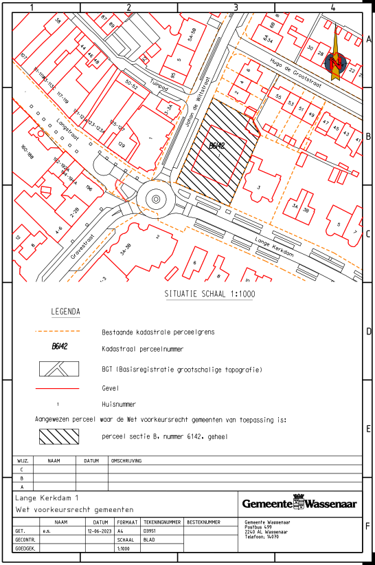 Lijst van het aangewezen perceel in de kadastrale gemeente Wassenaar, waarop de artikelen 10 tot en met 15, 24 en 26 van de Wet voorkeursrecht gemeenten (Wvg) van toepassing is, zoals deze voorkomen op de tekening met nummer D3951, behorende bij het besluit van burgemeester en wethouders van de gemeente Wassenaar ex artikel 6 Wvg van 4 juli 2023.