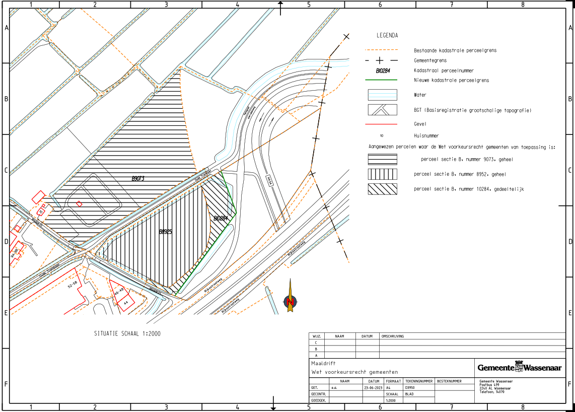 Het college van Burgemeester en wethouders van de gemeente Wassenaar maken ingevolge artikel 7 lid 1 van de Wet voorkeursrecht gemeenten (Wvg) bekend dat zij bij besluit van 4 juli 2023, op grond van het bepaalde in artikel 6 van de Wvg, heeft besloten gronden ten noorden van de Maaldrift aan weerszijde van de Oude Trambaan, aan te wijzen als gronden, waarop artikel 3 lid 2 en 3 van de Wvg en artikelen 10 t/m 15, 24 en 26 van de Wvg van toepassing zijn.