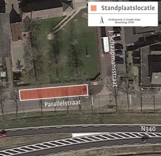 De standplaats mag uitsluitend worden ingenomen op de aangegeven locatie op de plattegrond.