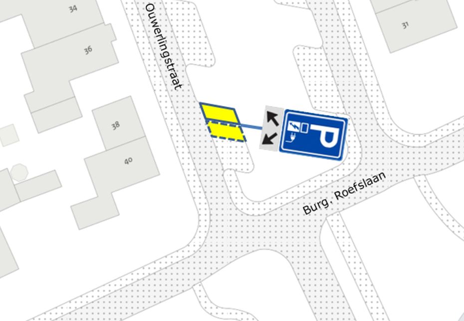 2 (aantal) parkeerplaatsen bij de laadpaal aan de Ouwerlingstraat 37 aan te wijzen als parkeerplaatsen voor alleen het opladen van elektrische voertuigen;