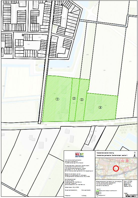 Behorende bij het besluit van burgemeester en wethouders van de gemeente West Betuwe van 25 juli 2023 tot het voorlopig aanwijzen van gronden op grond van artikel 6 Wet voorkeursrecht gemeenten (Wvg). Eén en ander conform de kadastrale registers van 19 juli 2023.