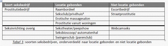 In tabel 1 is een overzicht opgenomen van locatiegebonden en niet-locatiegebonden seksbedrijven.7