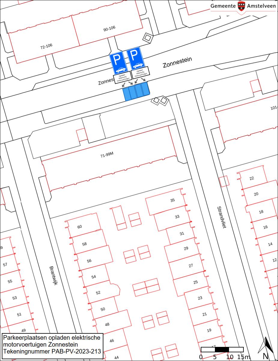 Bij het besluit van 10 juli 2023 (zaaknummer Z23-061875) zijn er vier parkeerplaatsen voor het opladen van elektrische motorvoertuigen aangewezen in de straat Zonnestein waarbij de vier parkeerplaatsen op de verkeerde locatie zijn ingetekend. De vier parkeerplaatsen zijn volgens de nieuwe bebordingstekening PAB-PV-2023-213 correct ingetekend.