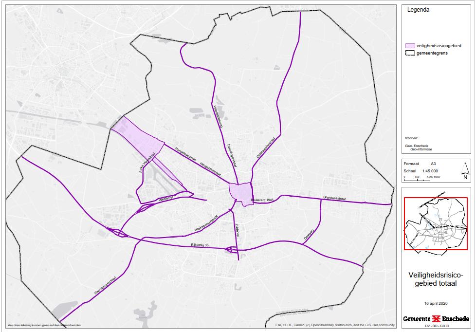 De invalswegen van Enschede, zijnde de A35/N35, de Haaksbergerstraat/N18, de Oldenzaalsestraat, de Weerseloseweg, de Deurningerstraat, de Gronausestraat, de Boulevard 1945 tussen de Oldenzaalsestraat/Mooienhof en Gronausestraat, de Oostweg, de Zuiderval, de Westerval, de Auke Vleerstraat, de Hendrik ter Kuilestraat, de Parkweg (tussen de Westerval en de Lambertus Buddestraat) en de Hengelosestraat, alle straten inclusief op- en afritten en naastgelegen parkeerplaatsen en voor zover gelegen binnen de gemeentegrens (bijlage 4).