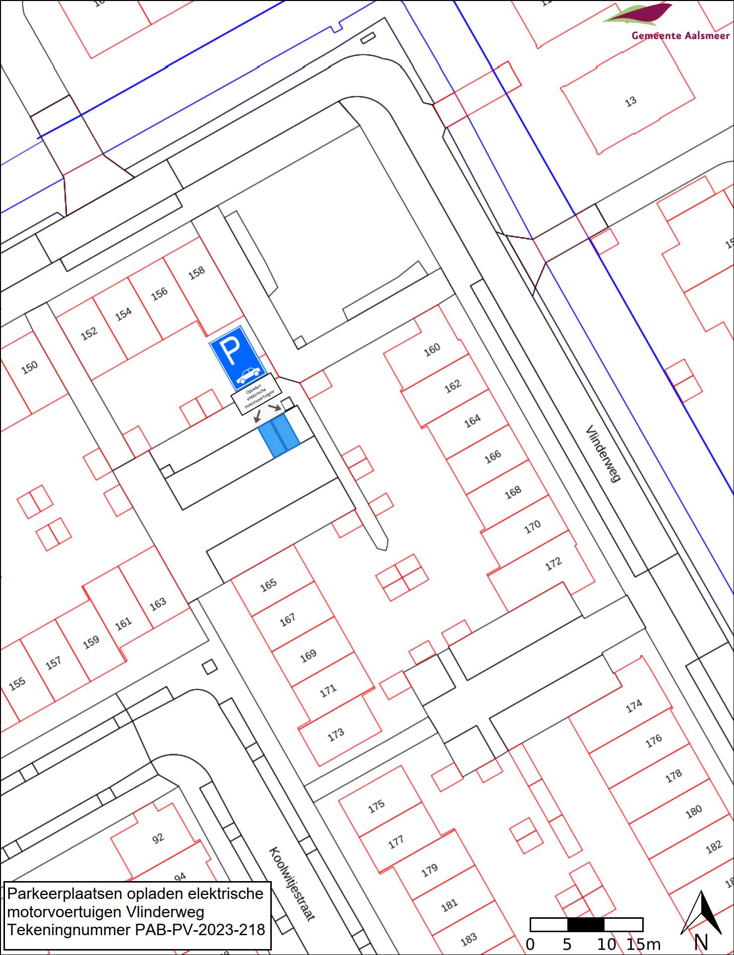 Burgemeester en wethouders van Aalsmeer besluiten om in de Vlinderweg twee parkeerplaatsen aan te wijzen als parkeerplaats voor het opladen van elektrische motorvoertuigen. De parkeerplaatsen mogen alleen gebruikt worden voor het opladen van deze elektrische motorvoertuigen.
