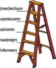 In de Kadernota Burgerparticipatie is de participatieladder geïntroduceerd. Deze geeft de mate van invloed aan van belanghebbenden in een beleidsproces. De participatieladder kent vijf treden. De laagste trede is informeren en bij deze trede is het minst sprake van burgerparticipatie. De maximale vorm is meebeslissen en bij deze trede is het meest sprake van burgerparticipatie.