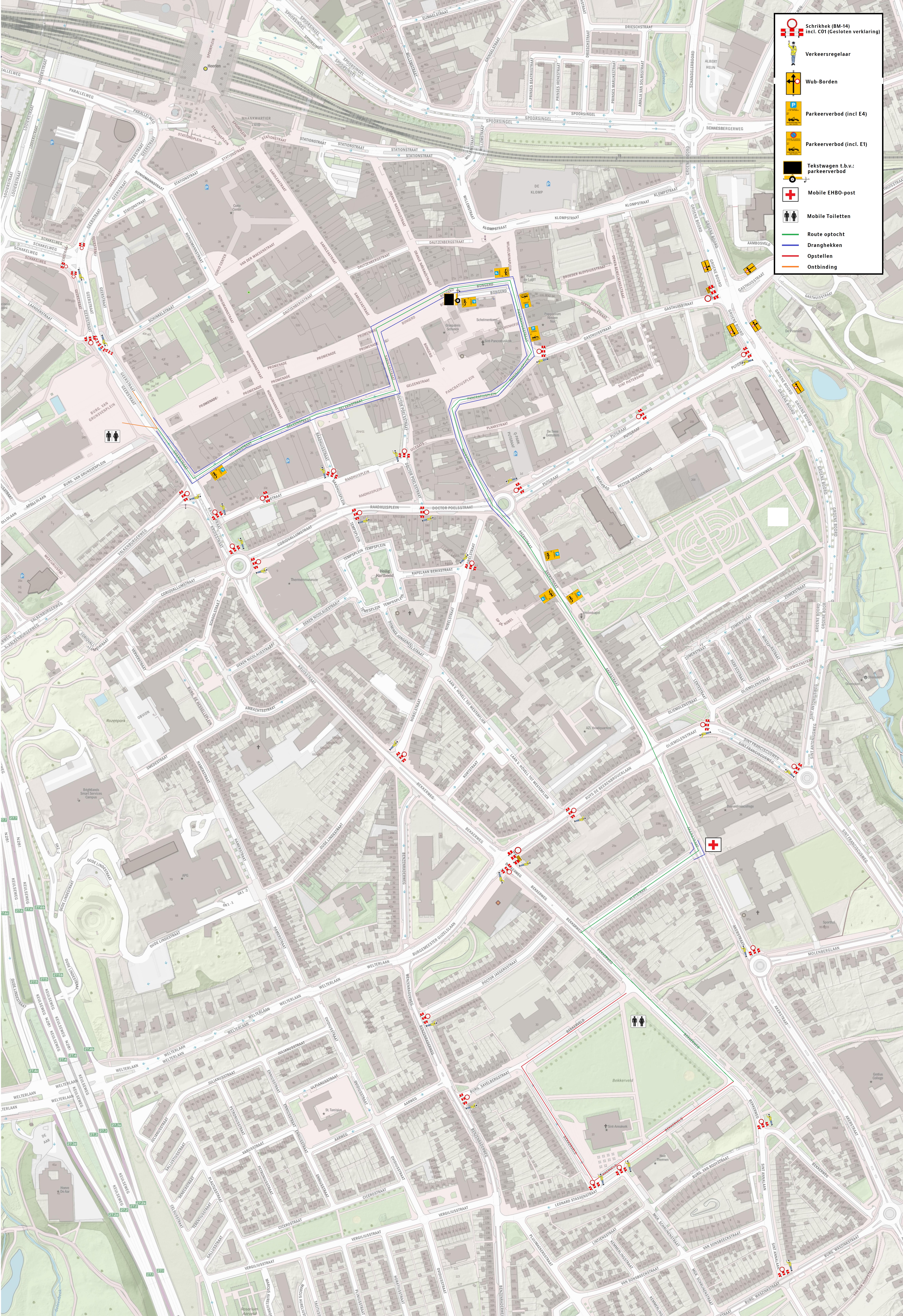 Carnaval Heerlen 2023, Grote Optocht Centrum Heerlen, Situatietekening verkeersmaatregelen afzettings-/omleidingsplan, d.d. 17-01-2023.