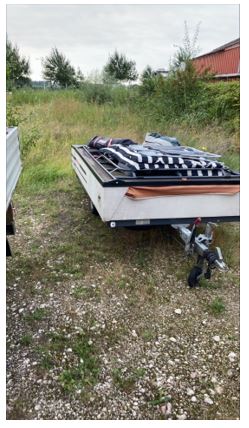 De eigenaar van deze aanhangwagen kan niet worden achterhaald. Op 9 augustus 2023 is de aanhangwagen daarom eerst gelabeld als vooraankondiging voor het toepassen van bestuursdwang. We hebben tot op heden geen bericht had van deze eigenaar.