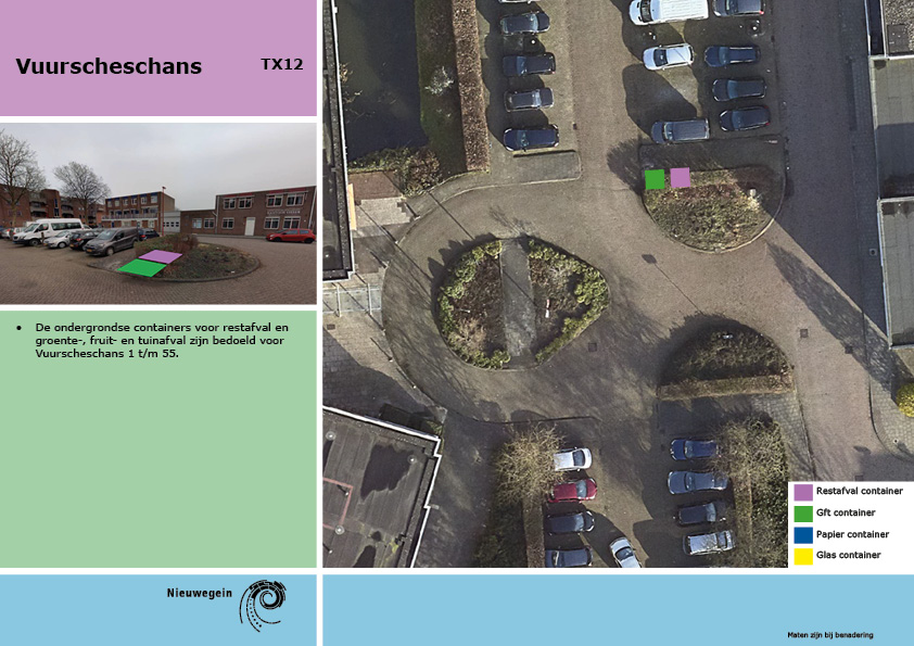 Ontwerpbesluit voor het plaatsen van een of meerdere (semi-) ondergrondse afvalvoorzieningen, wijk Fokkesteeg, nabij het adres 1-55 komt een nieuwe locatie voor restafvalcontainer(s) en een GFT-container en een papiercontainer.