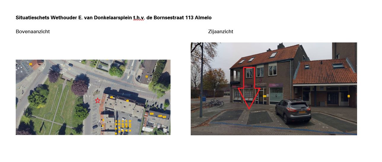 Verkeersbesluit voor het aanwijzen van twee parkeerplaatsen voor het opladen van elektrische voertuigen op het Wethouder E. van Donkelaarsplein ter hoogte van de Bornsestraat 113 in Almelo