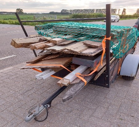 Op de parkeerstrook tegenover/nabij de Langeweg 398 Zwijndrecht staat al enige tijd een aanhangwagen met puin (waaronder naar het lijkt: houten planken) zonder kenteken geparkeerd. Overige kenmerken: hout/bruin/zwart, waarbij het puin is afgedekt met een groen net. De aanhangwagen staat reeds tussen 11 augustus 2023 en 21 augustus 2023 op / aan de openbare weg en daarmee langer dan drie opeenvolgende dagen op/aan de openbare weg. Hierdoor handelt de houder/eigenaar van de aanhangwagen in strijd met art. 5:6, eerste lid, onder a, van de Algemene plaatselijke verordening Zwijndrecht 2021 (Apv).