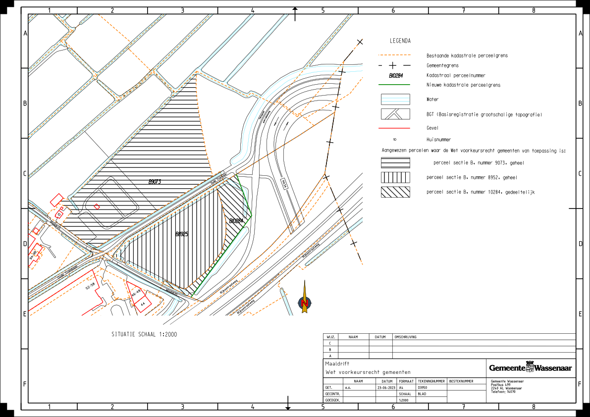 Lijst van aangewezen percelen en perceelsgedeelten in de kadastrale gemeente Wassenaar, waarop de artikelen 10 tot en met 15, 24 en 26 van de Wet voorkeursrecht gemeenten (Wvg) van toepassing zijn, zoals deze voorkomen op de tekening met nummer D3950 behorende bij het besluit van de gemeenteraad van Wassenaar ex artikel 2 juncto 5 lid 1 Wvg van 19 september 2023.
