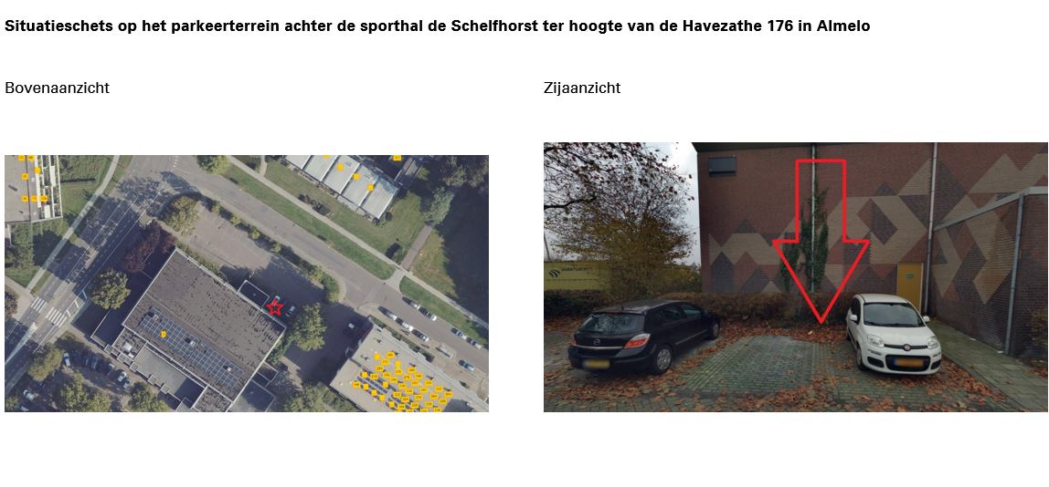 De locatie op het parkeerterrein achter de sporthal de Schelfhorst ter hoogte van de Havezathe 176 in Almelo staat op deze kaart. Tijdens de inspraak op deze kaart is aangegeven dat het een prima locatie is.