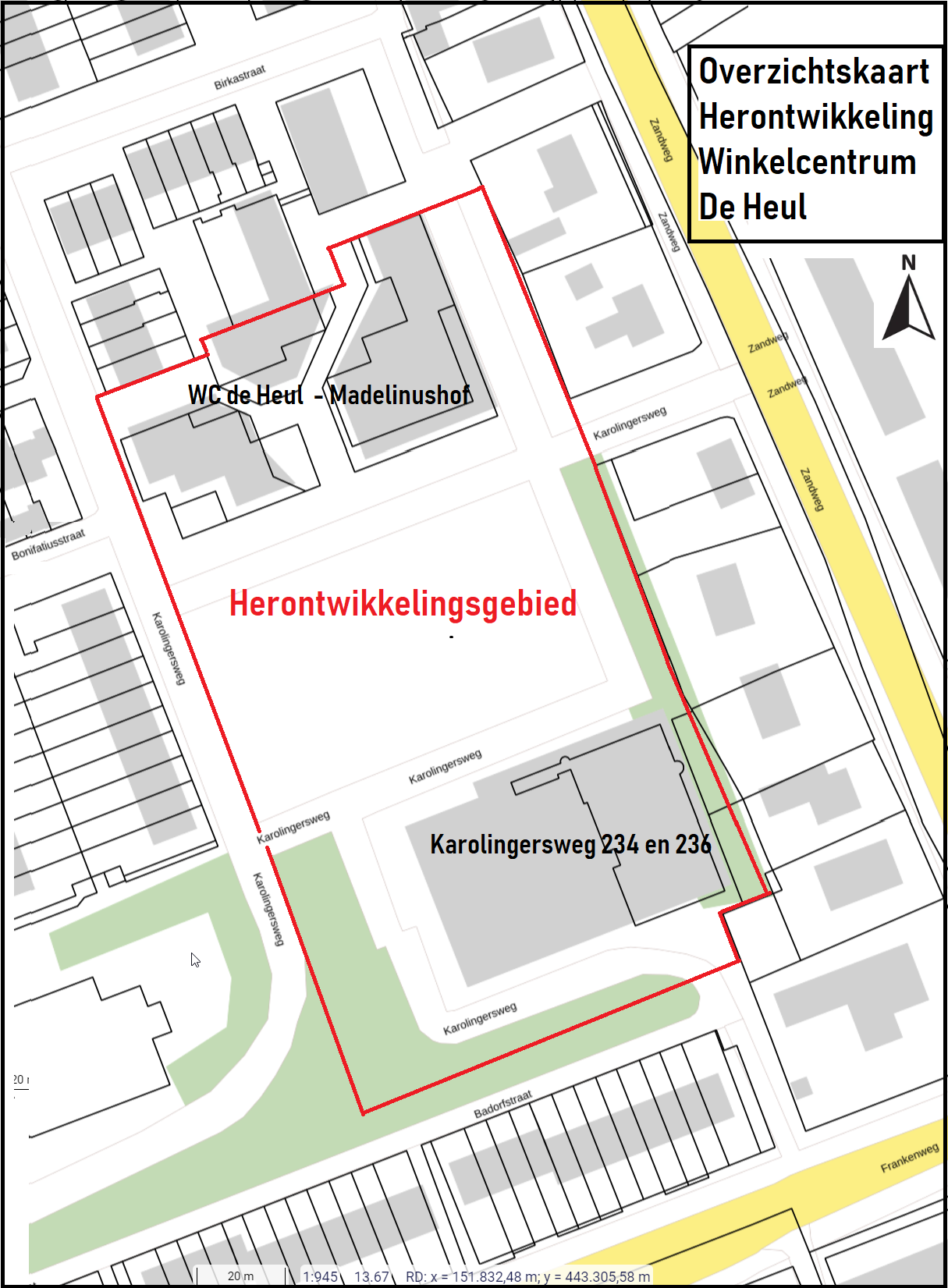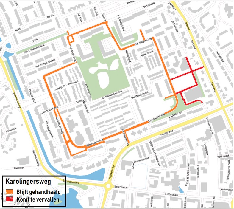 Voor de herontwikkeling van winkelcentrum De Heul als gevolg van de sloop te besluiten tot Inkorten van de Openbare Ruimte Karolingersweg, conform het voorstel van de Straatnamencommissie in haar vergadering op 11 september 2023: