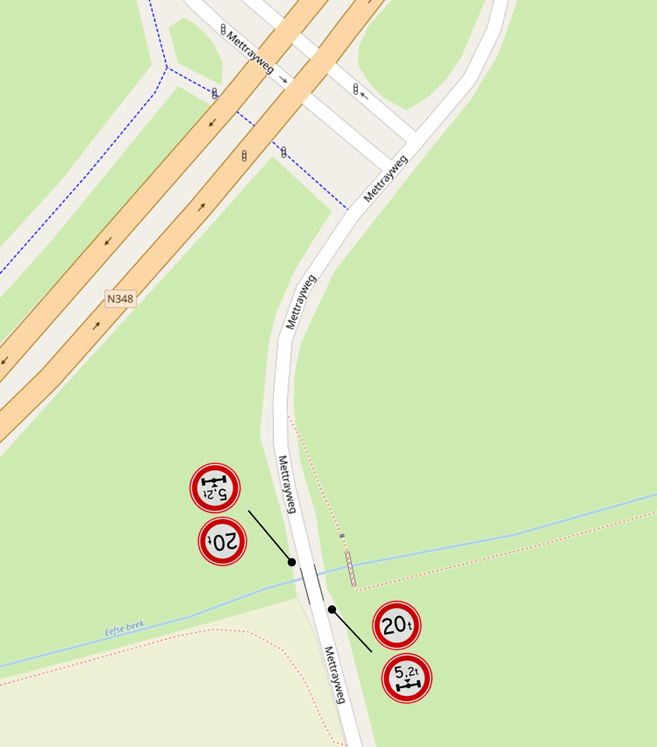 Door het plaatsen het borden model C20 van het Reglement Verkeersregels en Verkeerstekens 1990 de brug af te sluiten voor voertuigen met een aslast hoger dan 5,2 ton