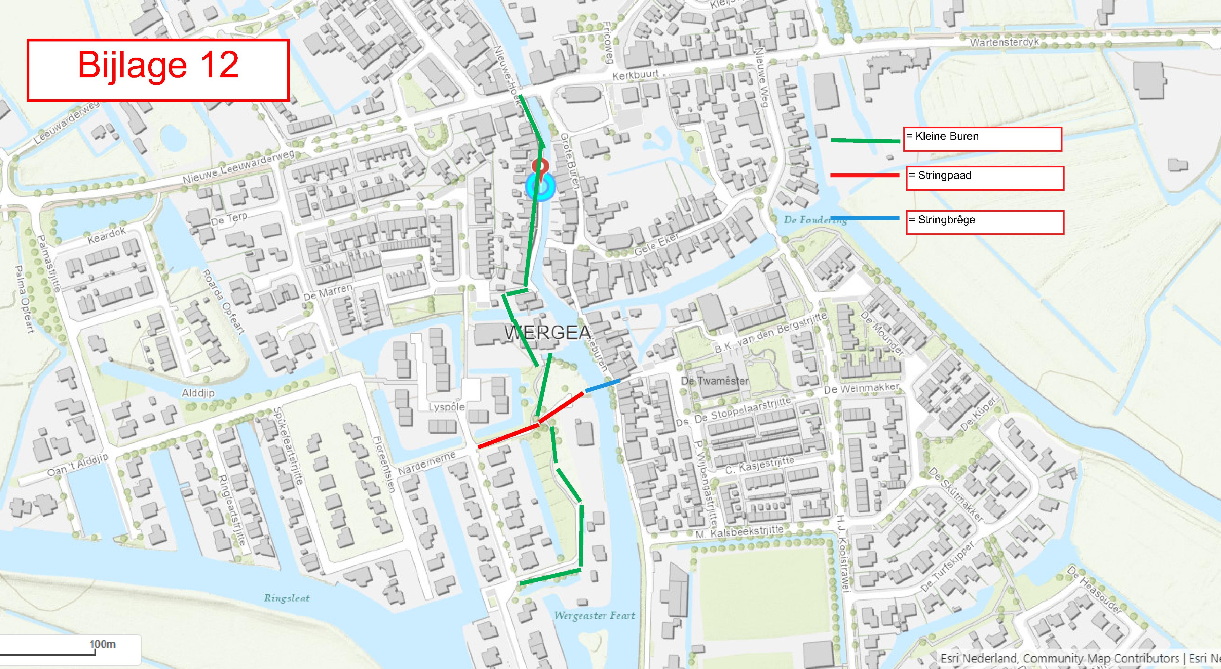 • Stringpaad – (Tagong nei de Stringbrêge, brêge nei it String (smel stik lân, stripe) op Hilleburen.) Conform bijlage 12.