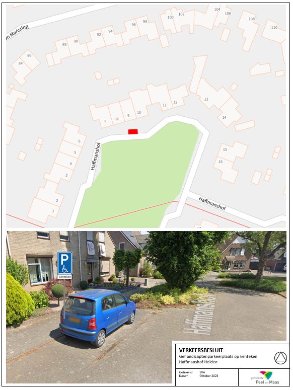 Gemeente Peel en Maas - Verkeersbesluit – Gehandicaptenparkeerplaats op kenteken – Haffmanshof Helden