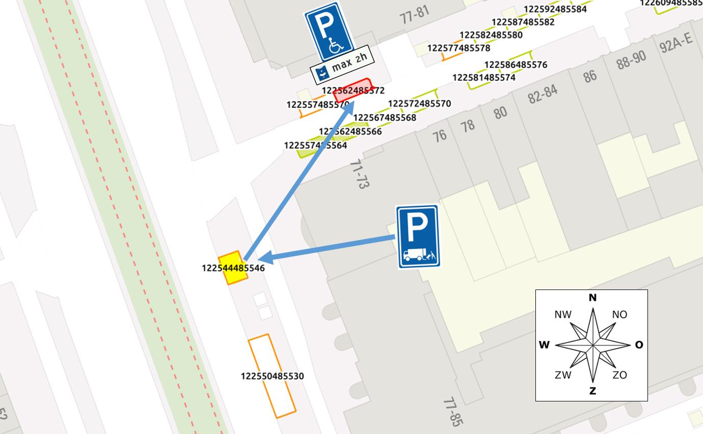 op de Wibautstraat, ter hoogte van perceel 77, een algemene gehandicaptenparkeerplaats met een maximale parkeerduur van 2 uur is gelegen (parkeervaknummer 122544485546);