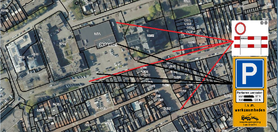 dat om deze straten af te sluiten en om parkeerverboden te plaatsen het nodig is borden C01 en E04 te plaatsen zoals aangegeven op de bijgevoegde tekeningen;