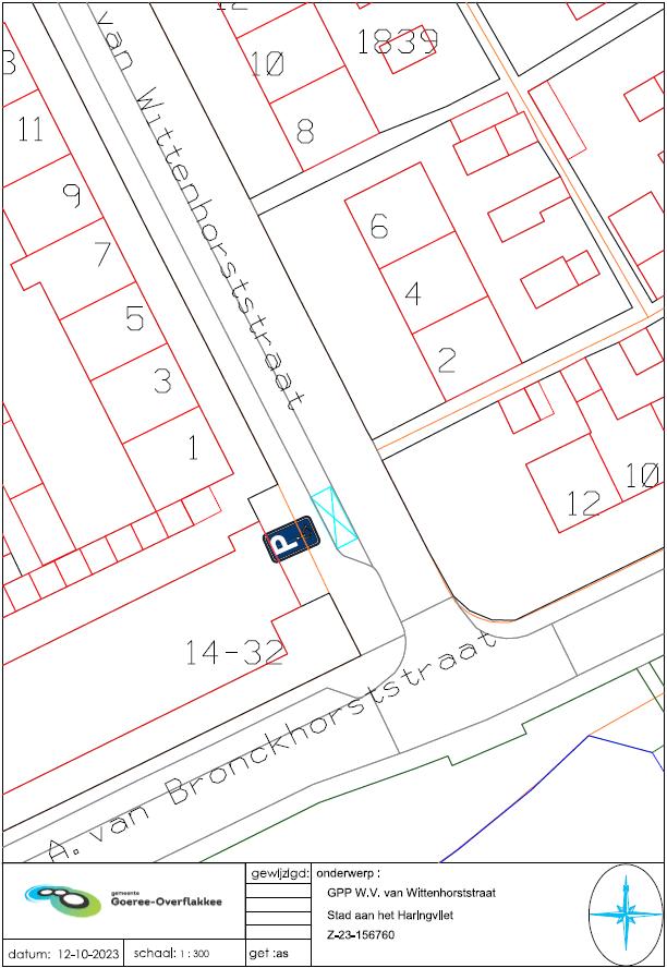 tot het aanwijzen van een gehandicaptenparkeerplaats op kenteken in de W.V. van Wittenhorststraat ter hoogte van de woning met huisnummer 1 te Stad aan het Haringvliet, door het plaatsen van verkeersbord E06 met onderbord OB309 met daarop het kenteken van de aanvrager conform model van bijlage I van het Reglement Verkeersregels en Verkeerstekens 1990;