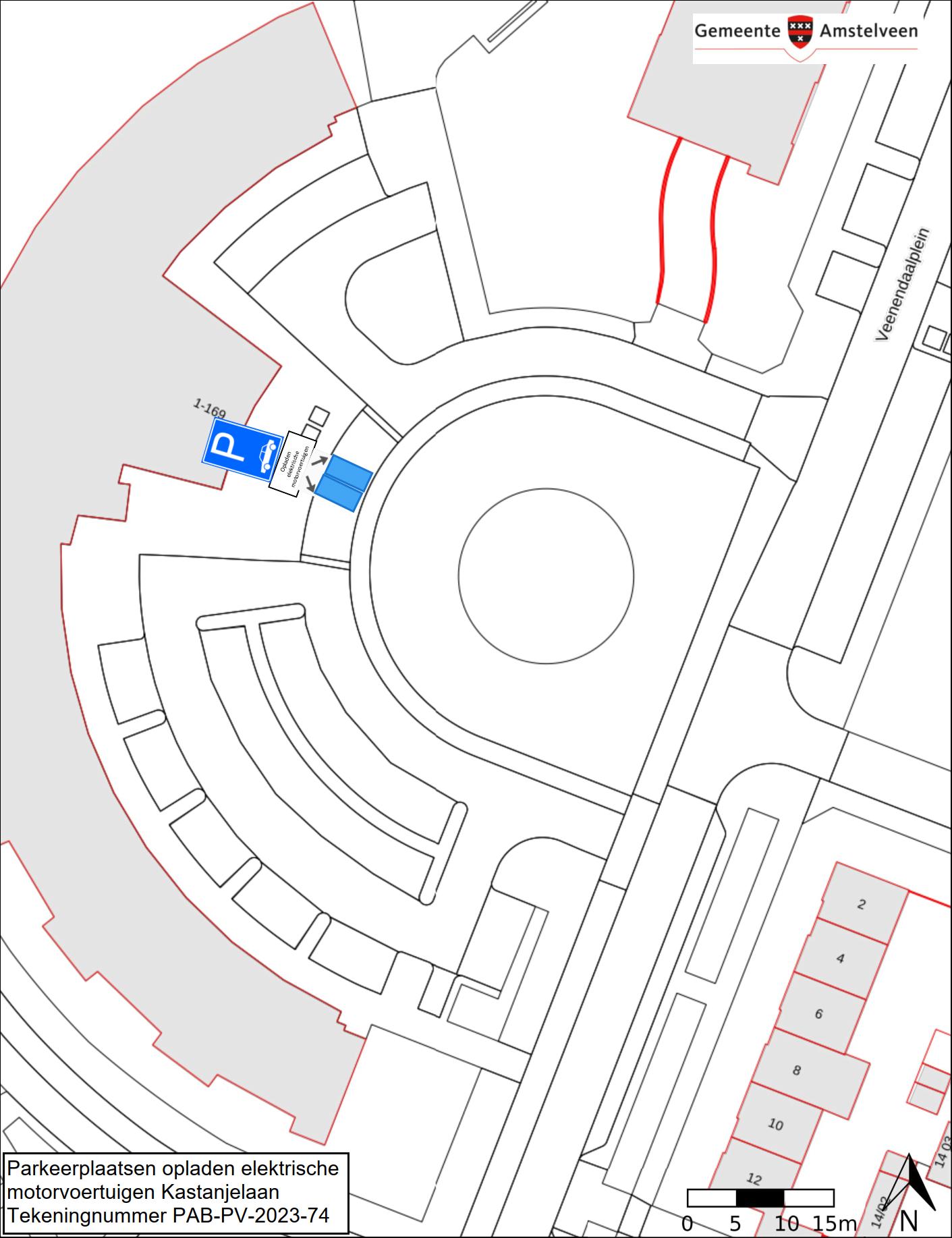 Burgemeester en wethouders van Amstelveen besluiten om hun besluit van 9 augustus 2023 (zaaknummer Z23-071159), waarbij twee parkeerplaatsen in de Kastanjelaan zijn aangewezen als parkeerplaats voor het opladen van elektrische motorvoertuigen, in te trekken. De openbare laadpalen zijn nog niet geplaatst waardoor in de praktijk niets veranderd. De geplande parkeerplaatsen voor het opladen van deze elektrische motorvoertuigen zijn weergegeven op de in dit besluit opgenomen tekening PAB-PV-2023-74.