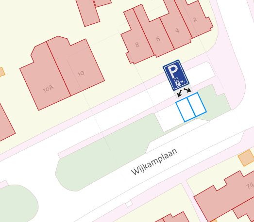 Door middel van het plaatsen van verkeersbord E8c –“Parkeergelegenheid alleen bestemd voor het opladen van elektrische voertuigen”– van Bijlage 1 van het RVV-1990 met onderbord OB504 met twee pijlen schuin naar links- en rechtsonder, twee parkeerplaatsen op de Wijkamplaan, ter hoogte van huisnummer 6, zoals aangeduid in het onderstaande situatieoverzicht, aan te wijzen als parkeergelegenheid alleen bestemd voor elektrische voertuigen met gebruik van de laadpaal.