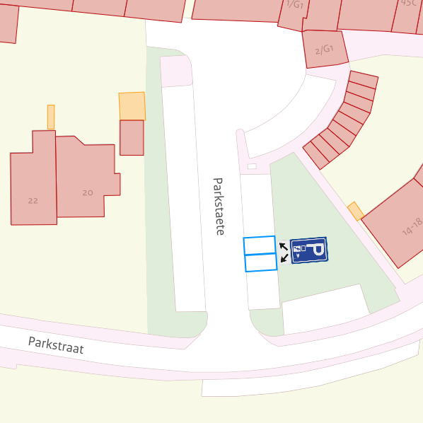 Door middel van het plaatsen van verkeersbord E8c –“Parkeergelegenheid alleen bestemd voor het opladen van elektrische voertuigen”– van Bijlage 1 van het RVV-1990 met onderbord OB504 met twee pijlen schuin naar links- en rechtsonder, twee parkeerplaatsen nabij Parkstraat nabij huisnummer 18, zoals aangeduid in het onderstaande situatieoverzicht, aan te wijzen als parkeergelegenheid alleen bestemd voor elektrische voertuigen met gebruik van de laadpaal.