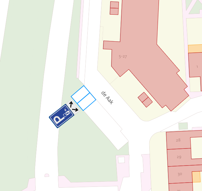 Verkeersbesluit voor het aanwijzen van twee parkeerplaatsen ten behoeve van elektrisch laden nabij De Aak 21