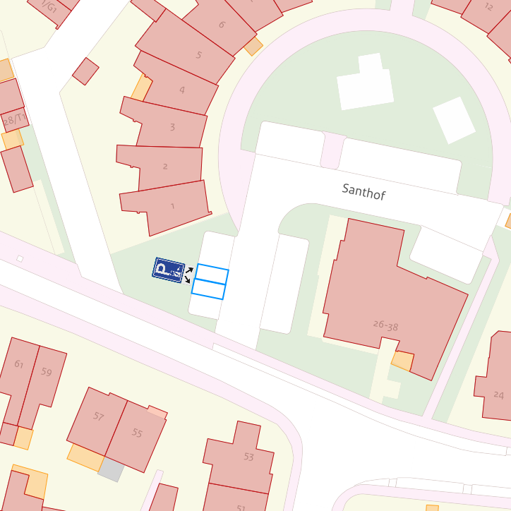Door middel van het plaatsen van verkeersbord E8c –“Parkeergelegenheid alleen bestemd voor het opladen van elektrische voertuigen”– van Bijlage 1 van het RVV-1990 met onderbord OB504 met twee pijlen schuin naar links- en rechtsonder, twee parkeerplaatsen op de Santhof nabij huisnummer 1, zoals aangeduid in het onderstaande situatieoverzicht, aan te wijzen als parkeergelegenheid alleen bestemd voor elektrische voertuigen met gebruik van de laadpaal.