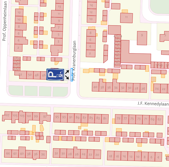 Door middel van het plaatsen van verkeersbord E8c –“Parkeergelegenheid alleen bestemd voor het opladen van elektrische voertuigen”– van Bijlage 1 van het RVV-1990 met onderbord OB504 met twee pijlen schuin naar links- en rechtsonder, twee parkeerplaatsen nabij J.F. Kennedylaan 42, zoals aangeduid in het onderstaande situatieoverzicht, aan te wijzen als parkeergelegenheid alleen bestemd voor elektrische voertuigen met gebruik van de laadpaal.
