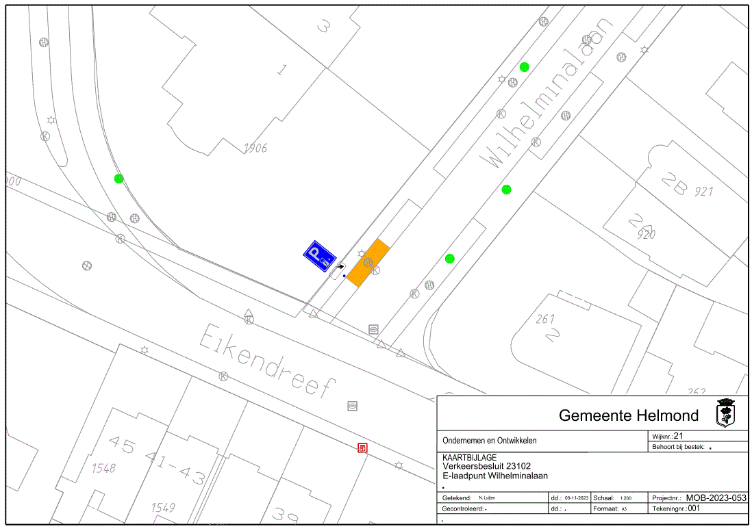 Verkeersbesluit voor het aanwijzen van een E-laadpunt aan Wilhelminalaan ter hoogte van nummer 1 te Helmond