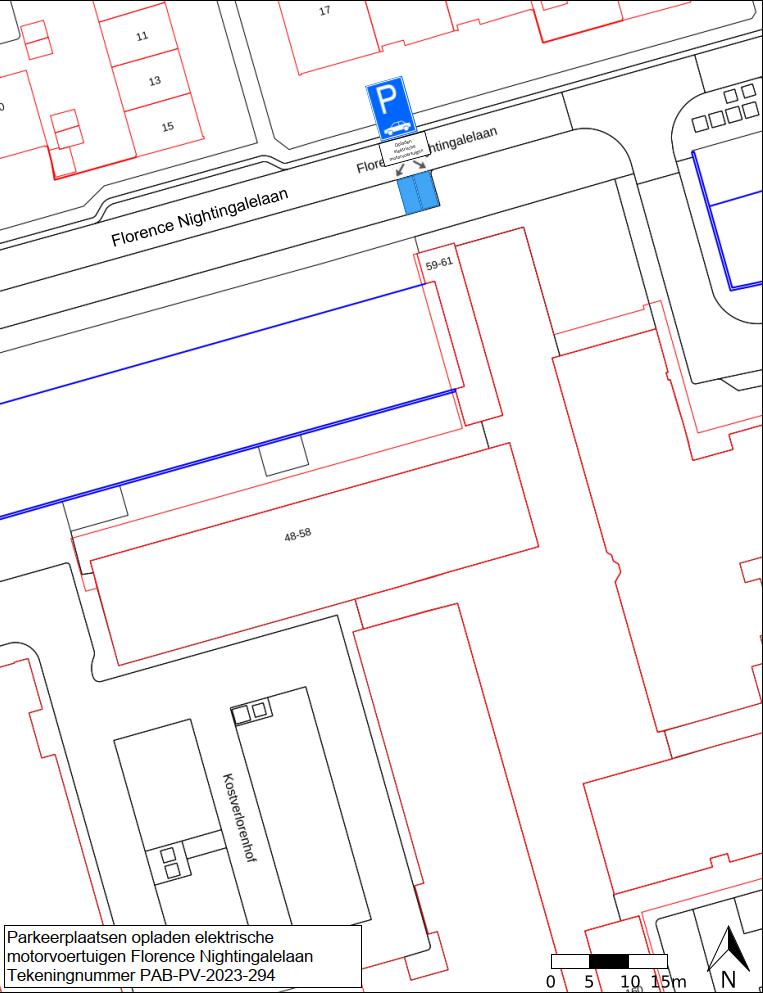Samen met de laadpaalexploitant is gezocht naar een geschikte alternatieve locatie. Deze locatie is gevonden in de Florence Nightingalelaan en op tekening PAB-PV-2023-294 zichtbaar. Op deze locatie worden er twee parkeerplaatsen aangewezen als parkeerplaats voor het opladen van elektrische motorvoertuigen.