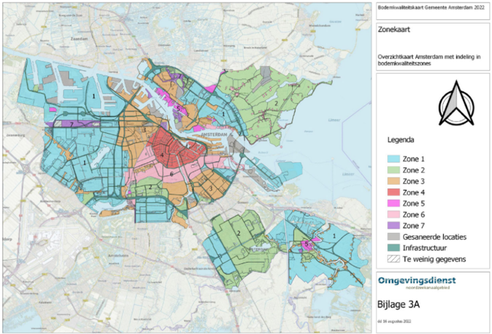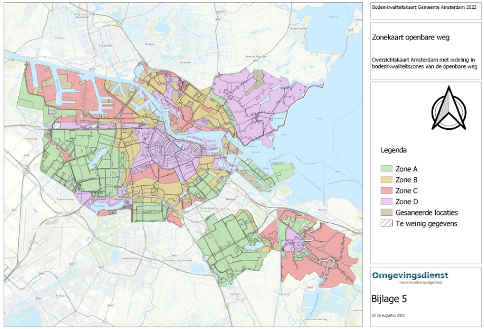 Het gaat om de volgende gebieden die zijn aangewezen op de bodemkwaliteitskaart Amsterdam: