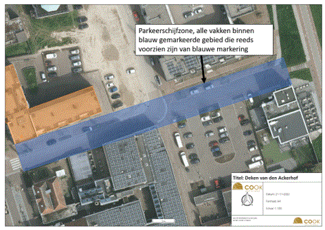 dat in 2016 de parkeerschijfzone in Cuijk al is vastgesteld in een aantal straten, te weten: Grotestraat, tussen Smidstraat en Fraterstraat, Zwaanstraat, tussen Molenstraat en Smidstraat, Maasstraat, Kaneelstraat, tussen Korte Molenstraat en Markt, Veldweg, tussen Jan van Cuijkstraat en Kaneelstraat, Smidstraat, tussen Zwaanstraat en Vorstendom en Molenstraat;