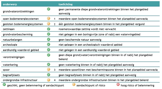 In Tabel 3.3 zijn de relevante belangen opgenomen die van invloed kunnen zijn op de werking van een open bodemenergiesysteem in Almere Centrum en Randstad. Het gaat om zowel technische als juridische aspecten.