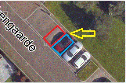 (Rode markering= Besluit punt 1: Nu te realiseren parkeervak voor opladen elektrische voertuigen.